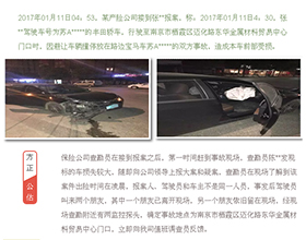 20**年02月15日,我司接受某產險公司委托,對其承保的蘇BXXXXX保時捷卡宴在20**年01月17日21時在甘肅省武威市天祝藏族自治縣行駛時避讓車輛導致標的車撞墻一案進行調查。